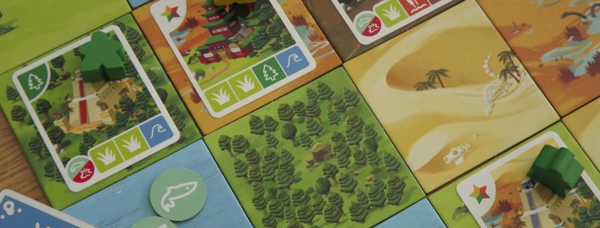 O ile pierwsza akcja nie wymaga jakichkolwiek wyjaśnień, ot pobieramy odkrytą kartę zastępując jej miejsce nowym kartonikiem bądź ciągniemy w ciemno ze stosu, tak zagranie karty wiąże się już z różnymi następstwami. W podstawowej grze występują dwa rodzaje kart: karty Natury, które pozwalają nam dołożyć wskazaną płytkę terenu na stół, tworząc tym samym przestrzeń do rozwoju oraz karty Życia, za pomocą których będziemy budować miasta oraz zsyłać na łono natury zwierzęta.