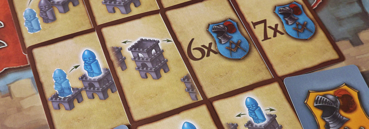 Świetnym rozwiązaniem nadającym grze taktycznego charakteru i odrobiny nieprzewidywalności są specjalne karty akcji, które możemy dociągać ze swojej prywatnej talii w ramach kolejnej z możliwych do wykonania czynności. Karty te łamią bowiem podstawowe reguły gry, pozwalając w inny sposób przemieszczać naszych rycerzy, dokładać kolejne segmenty zamku lub przekładać istniejące czy nawet zyskać dodatkowe punkty akcji na czas obecnej rundy. Karty akcji to nasze „asy w rękawie”, które odpowiednio wykorzystane mogą być dla nas punktem zwrotnym w rozgrywce, przechylając szalę zwycięstwa na naszą stronę. Nie muszę więc dodawać, że decyzję o ich zagraniu należy podejmować bardzo rozważnie, tym bardziej że każda karta występuje wyłącznie w jednej kopii w naszej talii.